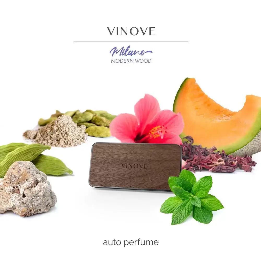 Аромат VINOVE Мілан (Milano) – яскрава і неординарна парфумерна композиція, присвячена Мілану. Динамічний настрій наймоднішого міста у світі. Свіжість м’яти, гострість спецій, солодкість фруктів – високий парфумерний стиль. MILANO Modern Wood — це справжнє мистецтво. Той унікальний момент, коли ми розуміємо, ради чого живемо. Поєднання виразного та смілого кардамону з додаванням гострого перцю надають аромату оригінальність, а тонкі нотки листя фіалки та свіжого шалфею ніжно збуджують, надаючи всьому юнацький шарм. Аромат ванілі робить розслабляючий вплив на всі почуття, а аромат кориці та каштана викликає справжнє блаженство. WOOD Колекція. Аромат: свіжий; фруктовий; квітковий Піраміда аромату: Верхні ноти: ананас, какао, боби тонка, кава, апельсин, абрикос Середні ноти: квіткові ноти, лайм, горіх, спеції, сухофрукти Базові ноти: мед, деревні ноти, ваніль, воскове дерево. Особливості: 3 режими ароматизації. Комплектація: Дифузор та змінний ароматичний блок з ароматом “Мілан”. Спосіб використання: Ароматизатор кріпиться до вентиляційної решітки вашого автомобіля за допомогою затискача. Характеристики: Розміри ароматизатора: 74х35х17мм Розрахований на 90 днів ароматизації Змінні блоки можна придбати окремо. Автомобільний ароматизатор VINOVE – це елегантний дизайн від майстрів неперевершеного італійського стилю — лаконічна форма, створена за натхненням силуету iPhone. WOOD – дизайнерські ароматизатори для авто з інкрустацією цінними видами деревини. Французьке походження рецептів автомобільних ароматів VINOVE забезпечує вишукані комбінації ароматних нот. Ваш автомобіль отримає додатковий вимір елегантності.