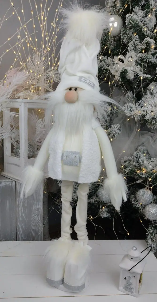 Гном 85см білий скандинавський Сніговик. Ельф інтерєрний Різдвяний ельф, санта клаус новорічний, іграшка м’ягка