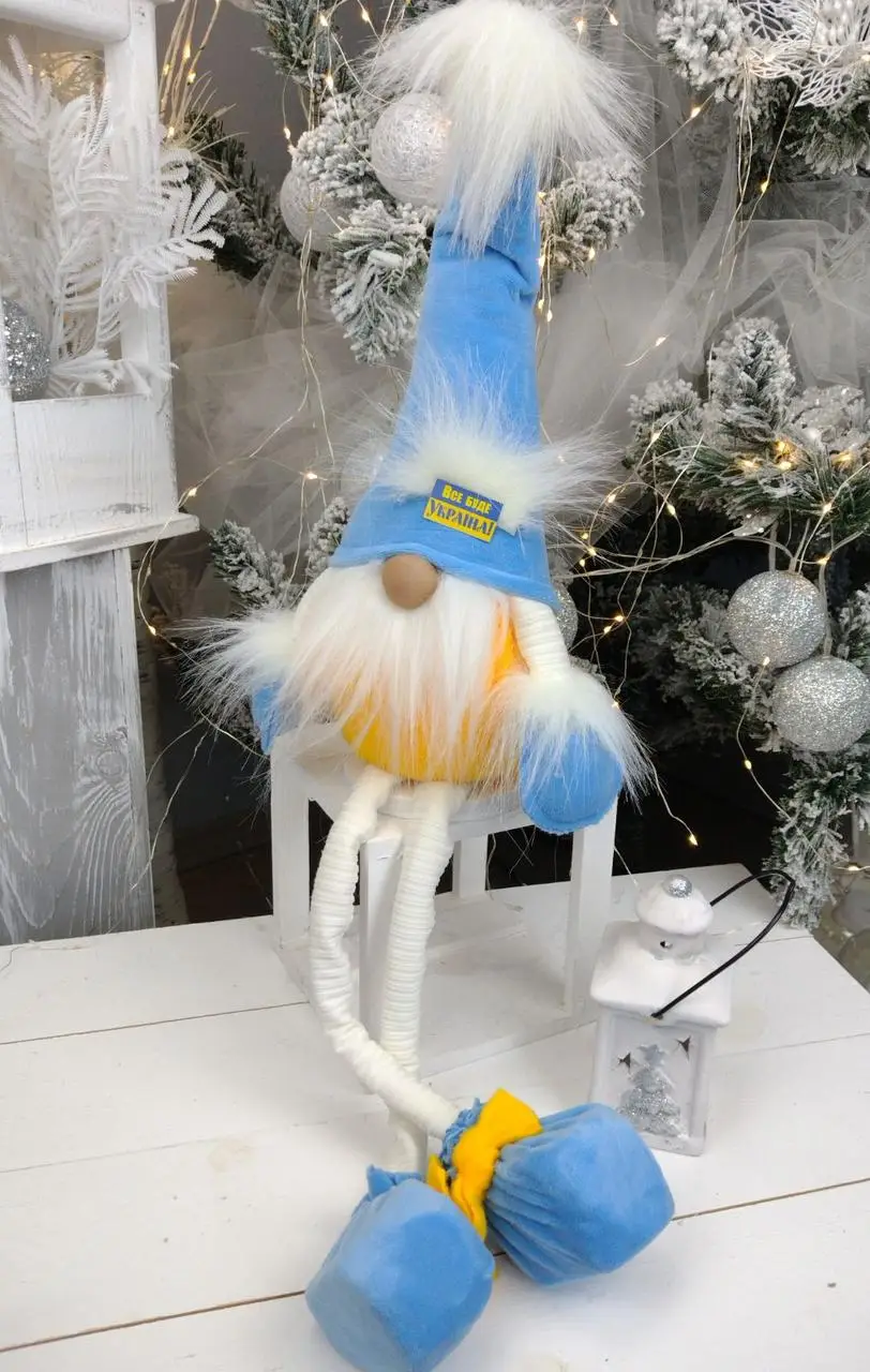 Іграшка патріотична 50см гном сидячий. Скандинавський ельф новорічний, санта різдвяний