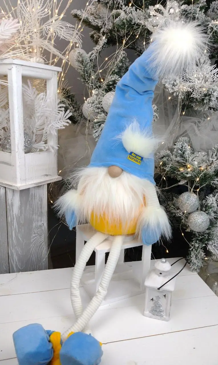 Іграшка патріотична 75см гном сидячий. Скандинавський ельф новорічний, санта різдвяний