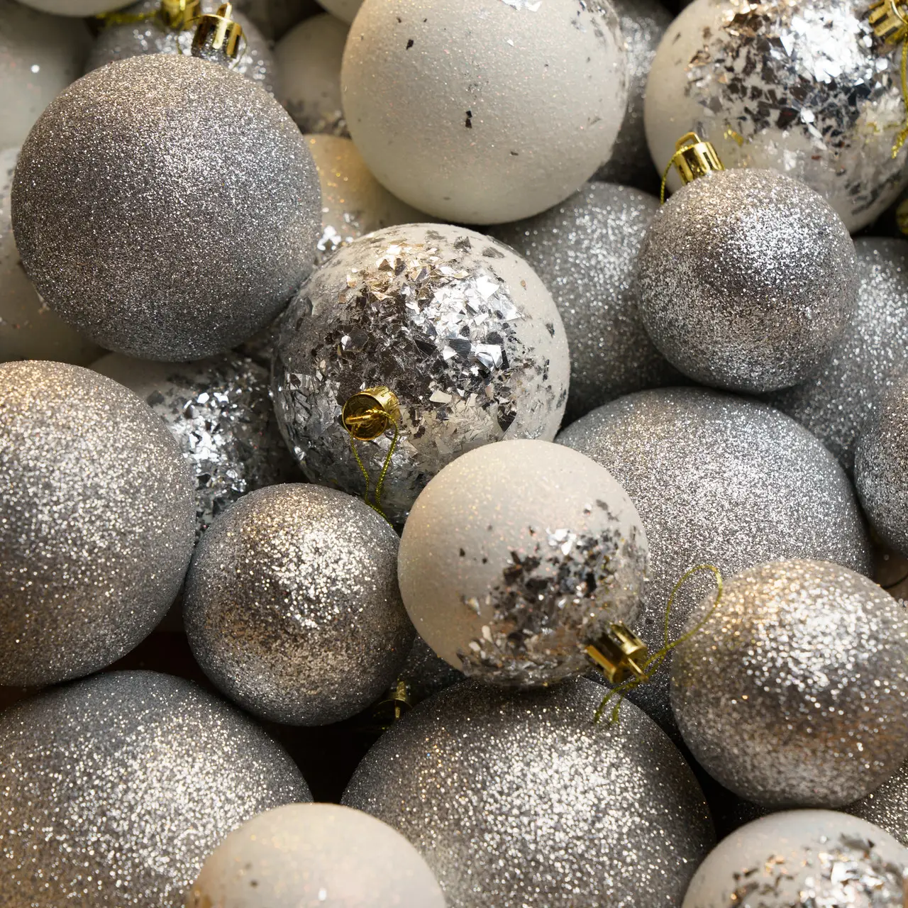 Набір новорічних куль “Бите Скло” 40 шт. Срібний. Подарунковий набір ялинкових кульок Кульки на ялинку