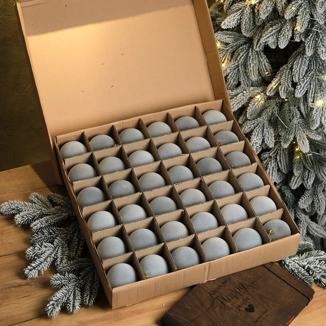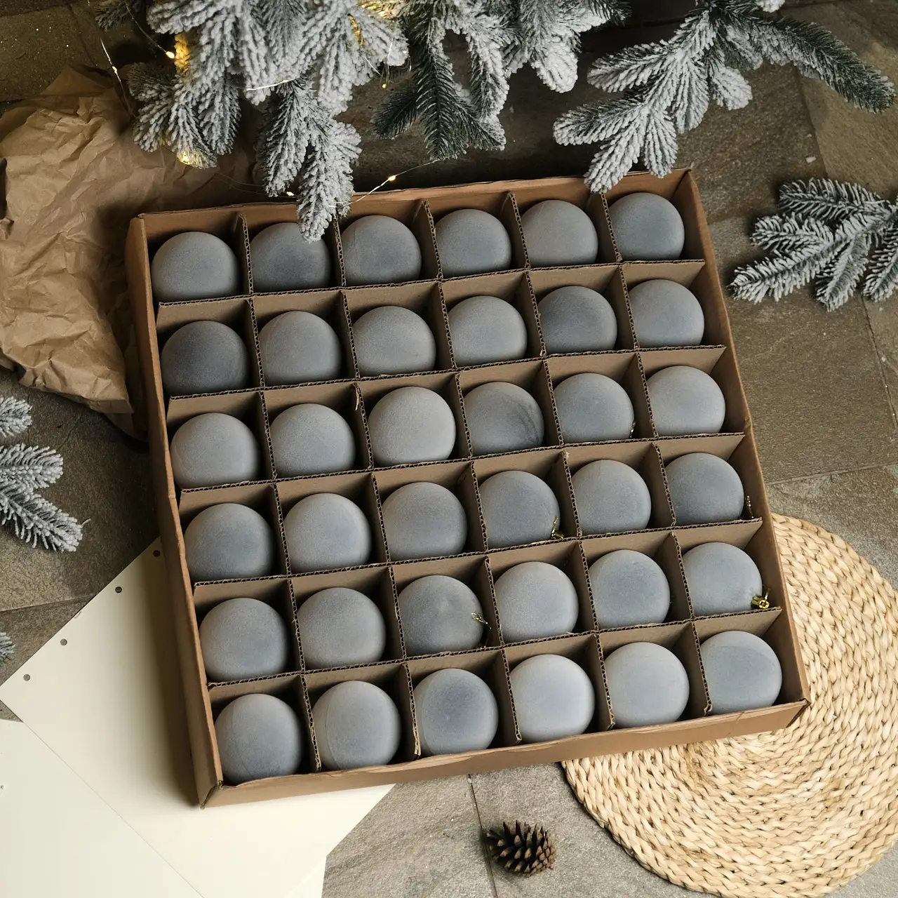 Набір новорічних куль “Оксамит” 18 шт. Нюдовий Сірий D-8см. Подарунковий набір ялинкових кульок Кульки на ялинку