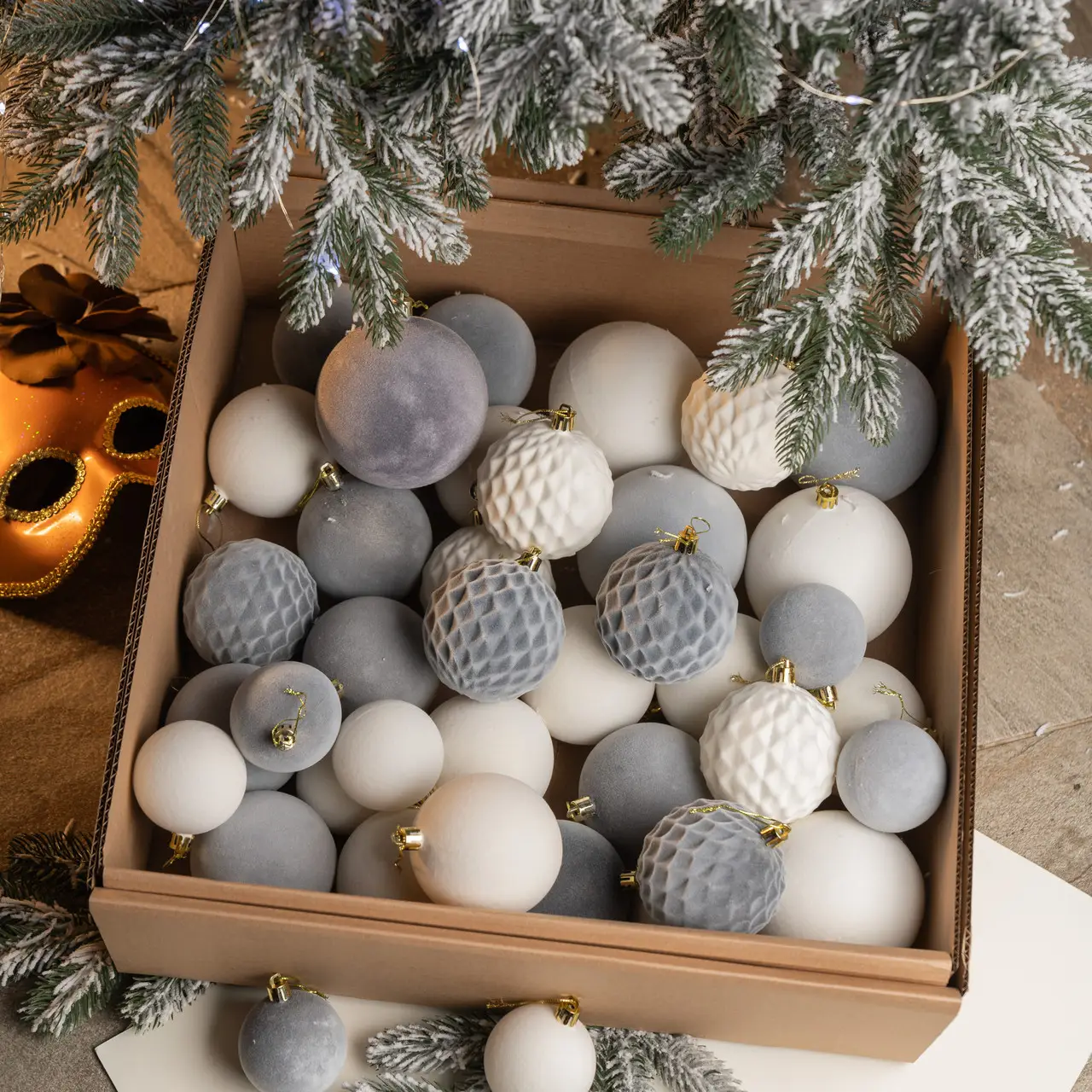 Набір новорічних куль “Оксамит” 40 шт. Сірий. Подарунковий набір ялинкових кульок Кульки на ялинку
