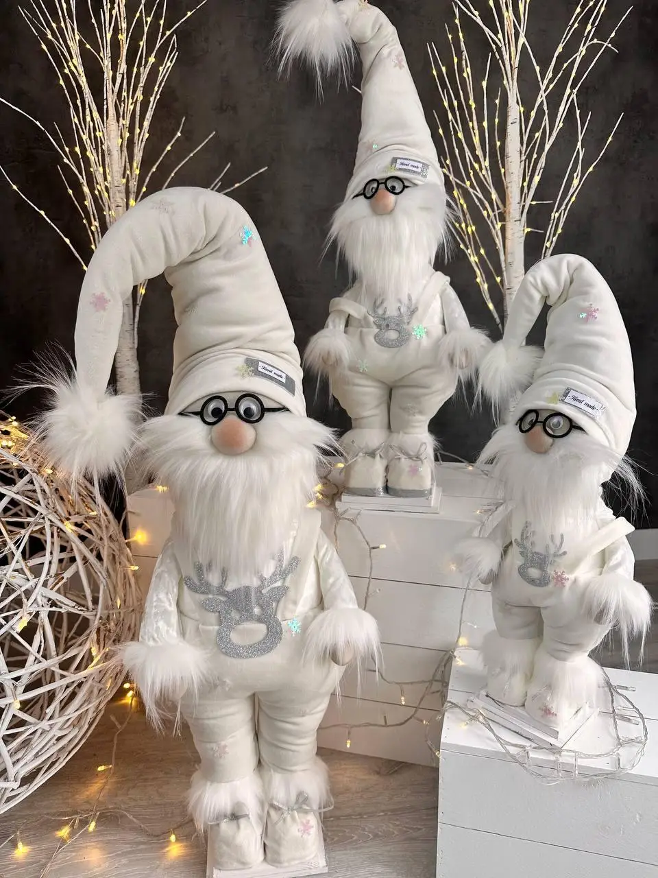 Санта 65см білий. Гном скандинавський в окулярах. Різдряний ельф Скандинавський, санта клаус новорічний, іграшка