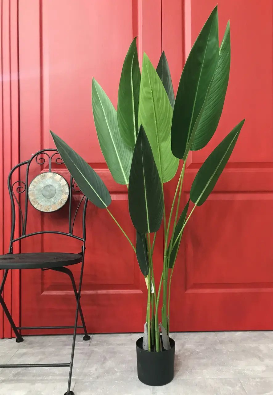 Стреліція — це приголомшлива рослина, що вражає своєю елегантністю та грацією. Її витончені листя нагадують стріли, які стріляють у небо, створюючи унікальний та неперевершений образ. Ця рослина додає пристрасної зелені в будь-який інтер’єр та подарує вам відчуття екзотичної краси в затишному куточку вашого дому чи офісу. Виготовлена із високоякісного пластику та тканини, ця рослина є стійкою та придатною для тривалого використання. У комплекті входить чорний пластиковий горщик, приклеєний до основної декорації. При бажанні рослину можна помістити в інший, більший горщик на ваш вибір. Технічні данні: Висота рослини разом із горщиком: 130 см Розмах листя: 60 см Кількість стебел: 6 Розмір горщика: діаметр 12 см, висота 15 см Габарити в упаковці: 120*35*35 см, вага 3.2 кг
